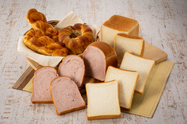 | ・ストロベリーブレッド | 【1個】: | いちごを生地に練り込んだ甘酸っぱい香りがお口に広がる朝食やおやつにピッタリの食パンです。特別な日の朝食や、大切な人へのプレゼントにもおすすめです。 |