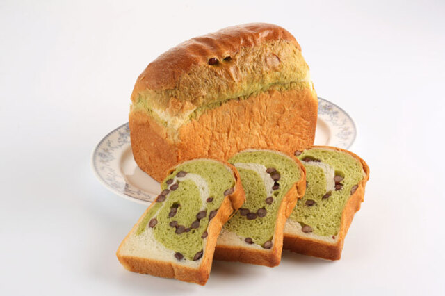 北海道産小豆「大納言」をロールインしました。抹茶と大納言小豆をマーブル状に巻き込んだ風味豊かなブレッドです。